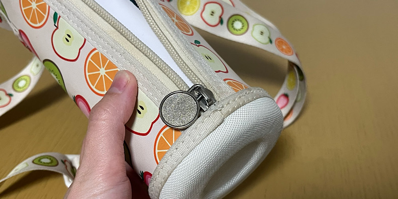 最初はこの水筒ではなく、くるまやキャラものがデザインされている可愛い水筒がいいかなーとも思いましが、どうせカバーすると見えないし、飽きがこなくてずっと使える利点を考えてこれにしました。