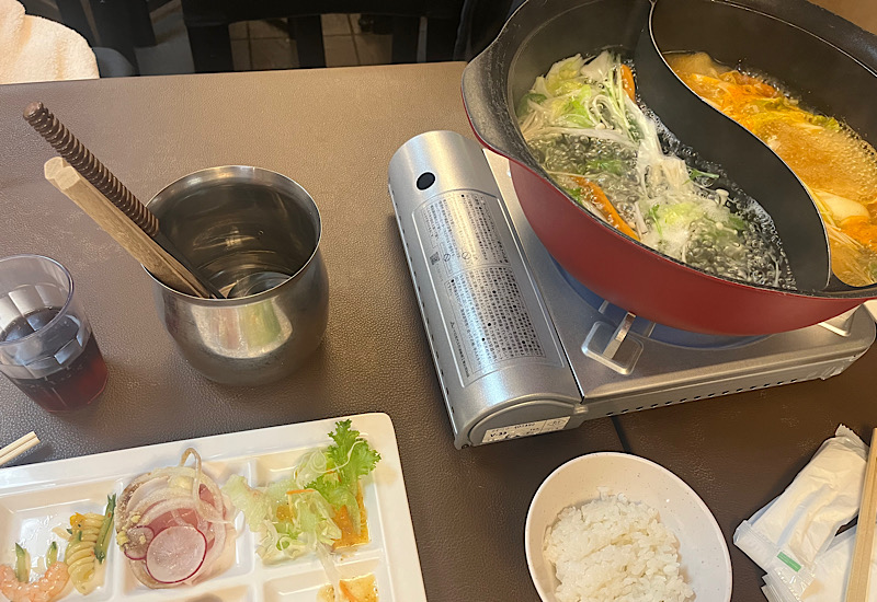 仕切りのあるお鍋だったので私は昆布出汁とチゲスープを選びました!